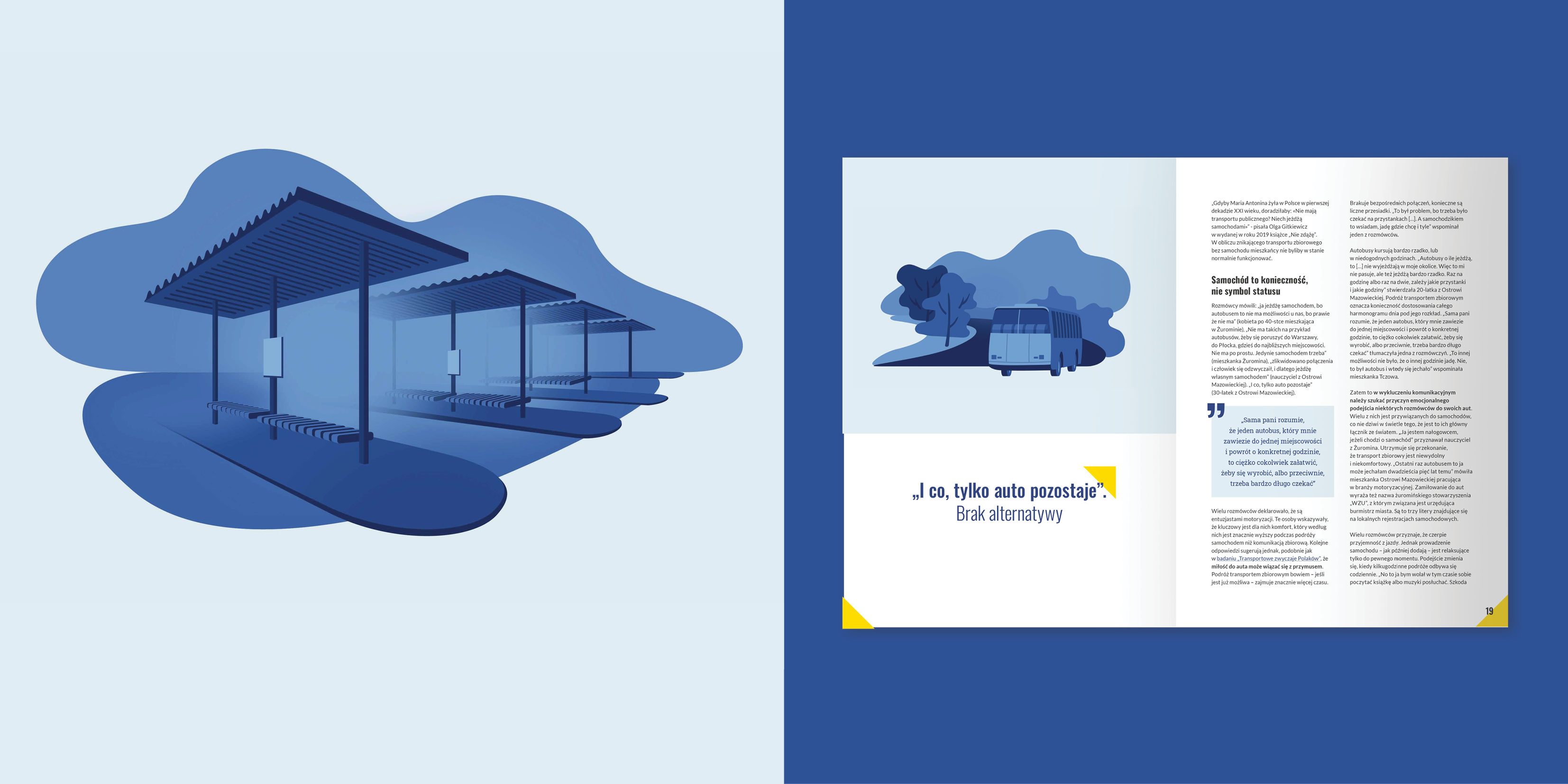 Identyfikacja wizualna kampanii “Zbiorkom jest ok” dla stowarzyszenia Miasto jest Nasze - logo+ skład raportu,2021