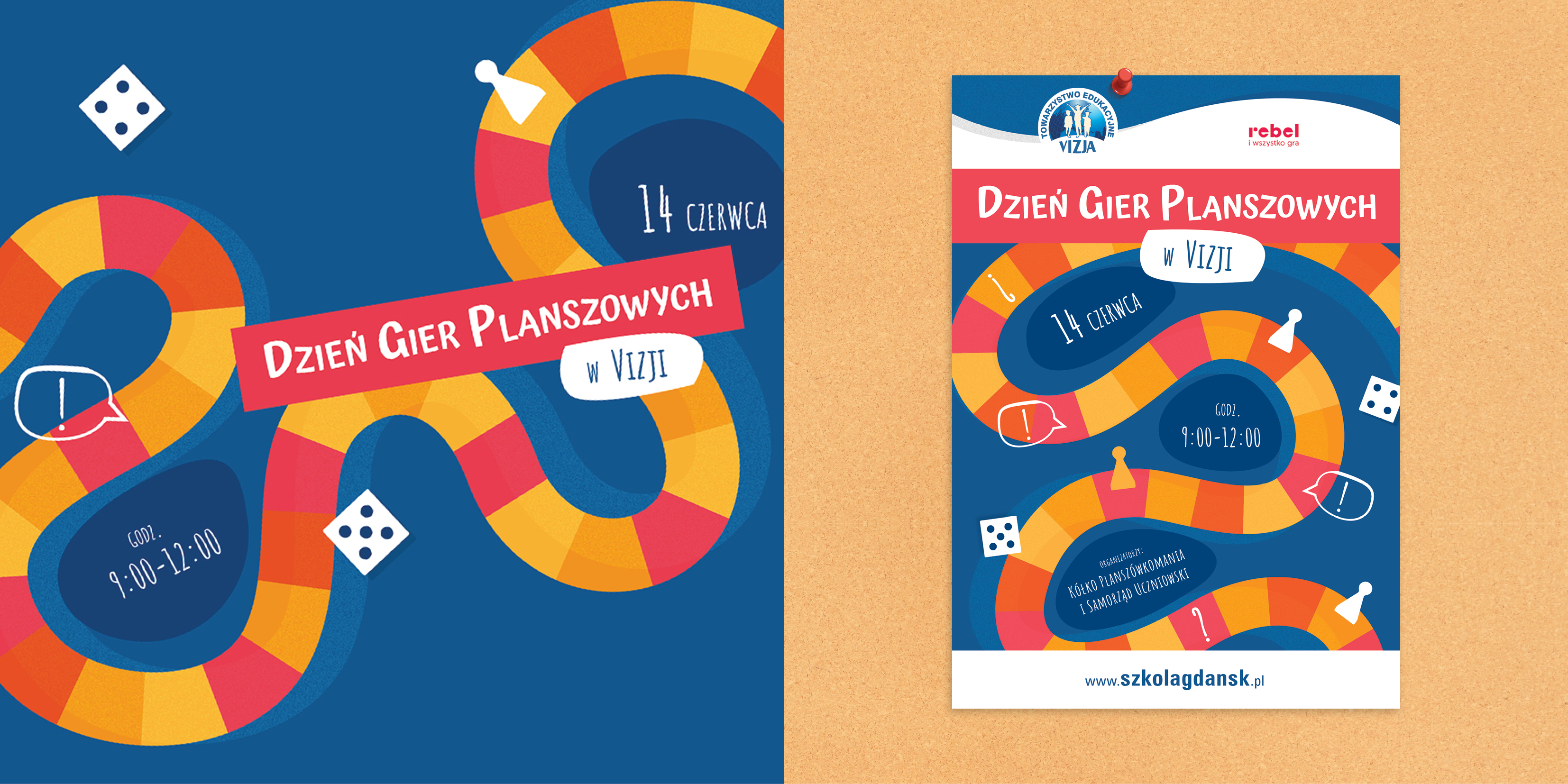 Plakat i grafika na stronę - Dzień gier planszowych w Vizji dla Towarzystwa Edukacyjnego Vizja, format A3, 2017