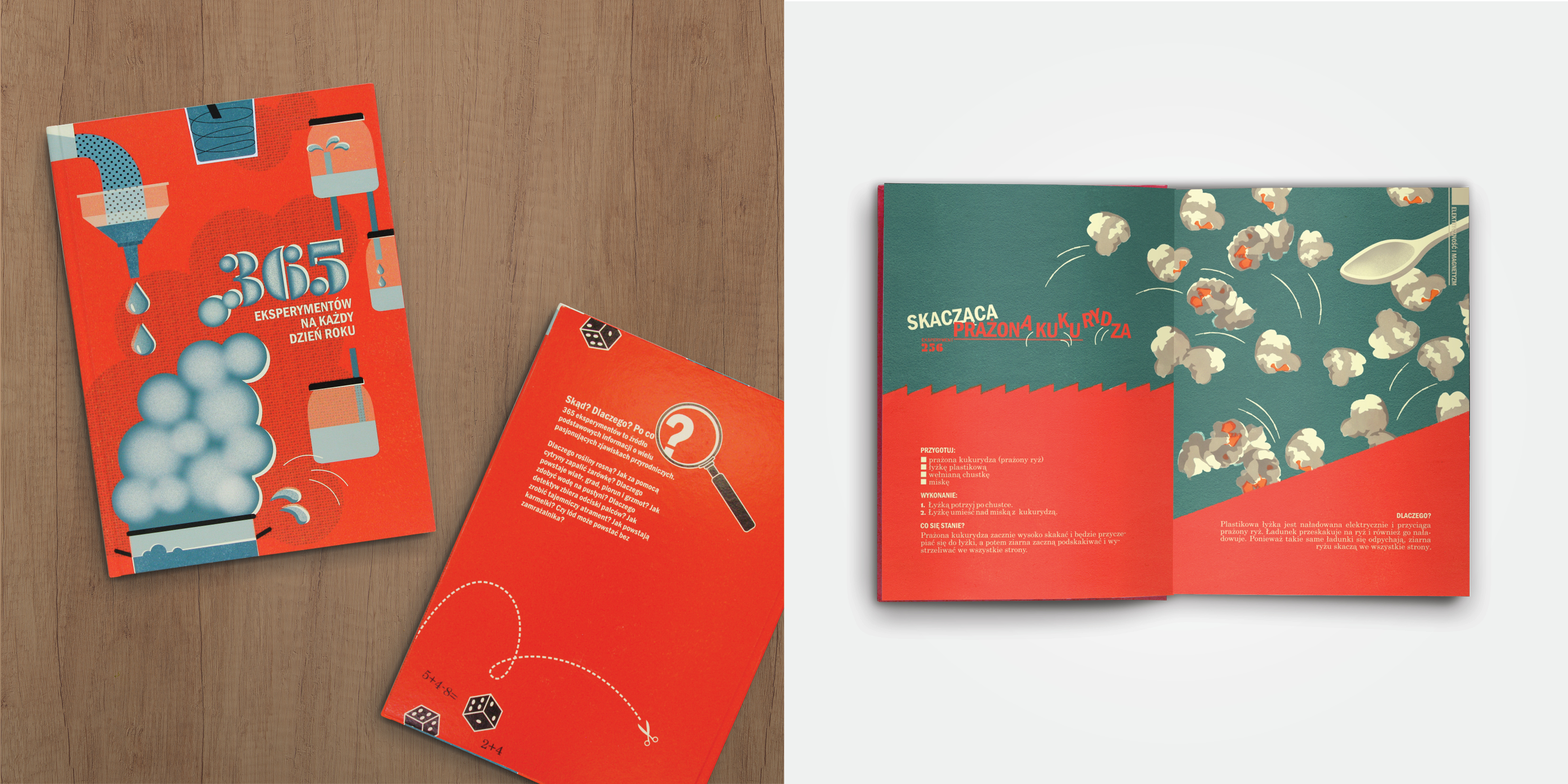 Opracowanie graficzne ksiażki “365 eksperymentów na każdy dzień roku” - praca dyplomowa, format B5, 2011
