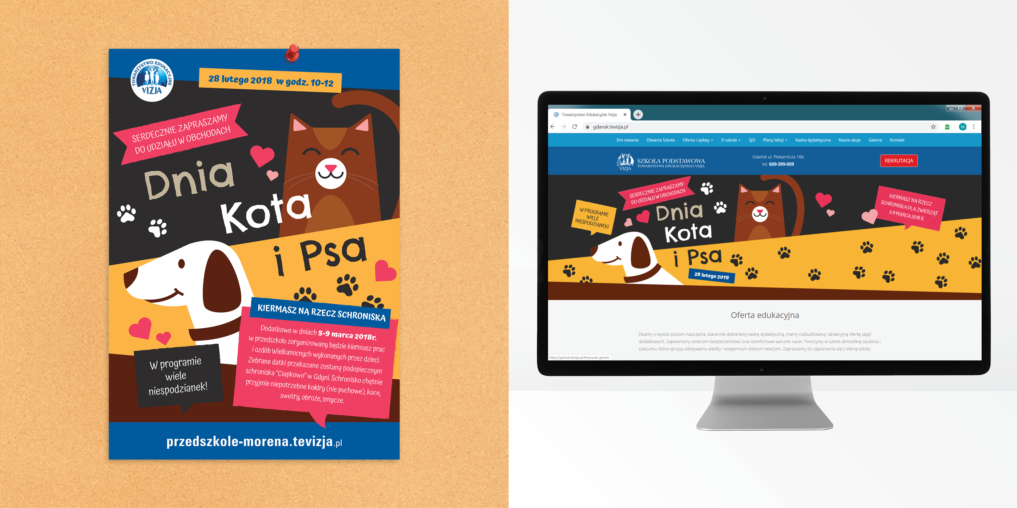 Plakat i baner na stronę - Dzień kota i psa dla Towarzystwa Edukacyjnego Vizja, format A3, 2018